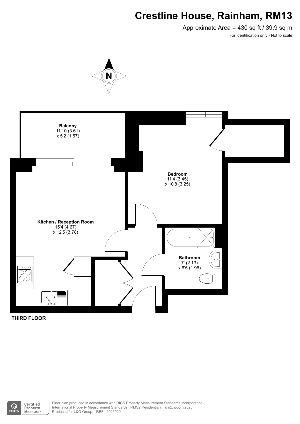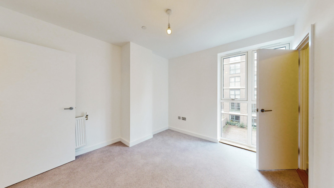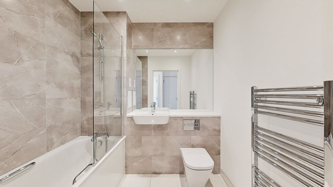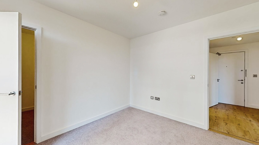 This apartment consists of an open-plan kitchen and living area, flooded with natural light, opening out onto a private balcony. The kitchen is fitted with dark blue matt matt effect wall and base units, with stylish under-cupboard lighting, and a white marble effect worktop. The kitchen also benefits from integrated appliances including a fridge freezer, oven, hob, extractor fan and dishwasher. Bright and airy double bedroom benefitting from floor length windows and a cupboard for storage. Bathroom comes complete with a white three-piece suite with a shower over the bath with a beige tile surround. Additional storage cupboard in hallway.